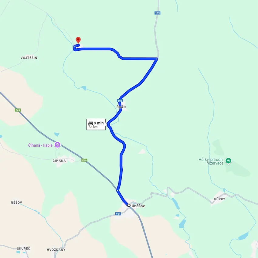 Pozor, aby vás navigace nevedla přes Štipoklasy a Vojtěšín. Tato trasa není nejvhodnější.